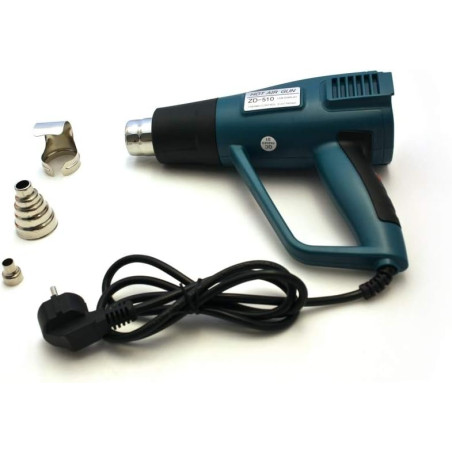 This powerful heat gun meets all the requirements of a hobby craftsman and also for professionals. This heat gun is designed for removing paints and varnishes, soldering pipes, shrinking PVC or heat shrink tubing, welding and bending plastics and metals as well as for drying, thawing and defrosting purposes. It can also be used as a standing device.