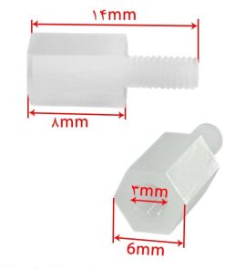 اسپیسر پلاستیکی با طول 6 میلیمتر یک سر مهره و یک سر پیچ شماره 3 با پارت نامبر HTS-306