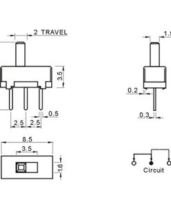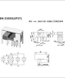 کلید کشویی 3 حالت 8 پایه با ابعاد طول16 میلیمتر،عرض 6 میلیمتر،طول دسته 5 میلیمتر