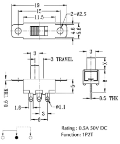 کلید کشویی 3 حالت 8 پایه با ابعاد طول16 میلیمتر،عرض 6 میلیمتر،طول دسته 4 میلیمتر
