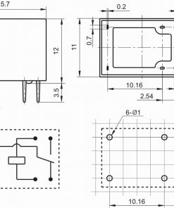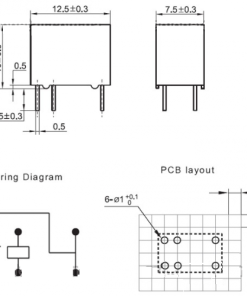 رله مینیاتوری 5VDC - NA5W-K یک رله 2 کنتاکت 2 آمپری با بوبین 5 ولت و 8 پین با طول 15 و عرض 8 و ارتفاع 9 میلیمتر است .