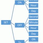 - حال روی نمایشگرS= ظاهر میشود که به معنای ثانیه می باشد و با کلید های UP و DOWN می توان زمان را افزایش و یا کاهش داد . پس از انجام تنظیمات ثانیه با فشردن کلید SET روی نمایشگر n= نمایش داده می شود که به معنای تنظیم دقیقه می باشد با فشردن دوباره ی کلید SET روی صفحه h= ظاهر میشود برای تنظیم ساعت و با فشردن مجدد کلیدSET روی صفحه ی نمایش d= ظاهر می شود که برای تنظیم روز می باشد با فشردن کلید SET تنظیمات زمان روشن بودن به پایان رسیده بر روی نمایش گر OFF نمایش داده می شود با فشردن کلید SET وارد تنظیمات OFF می شود تنظیمات قسمت OFF نیز همانند قسمت ON می باشد پس از پایان تنظیمات قسمت OFF روی نمایشگر
