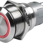 شناسه کالا: ۲۵۲۳کلید فشاری5 پین مهره خور 6A استیل با LED قرمز رنگ 12 تا 24 ولت ضد آب قطر 16mm