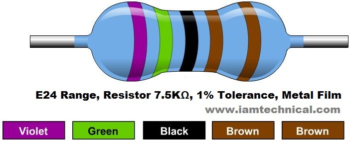 شناسه کالا: ۱۲۶۹۵مقاومت 7.5 کیلو اهم 1/4 وات 1%