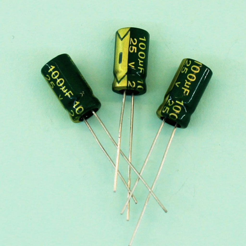شناسه کالا: ۸۶۵۹خازن الکترولیتی 100 میکرو فاراد 25 ولت
