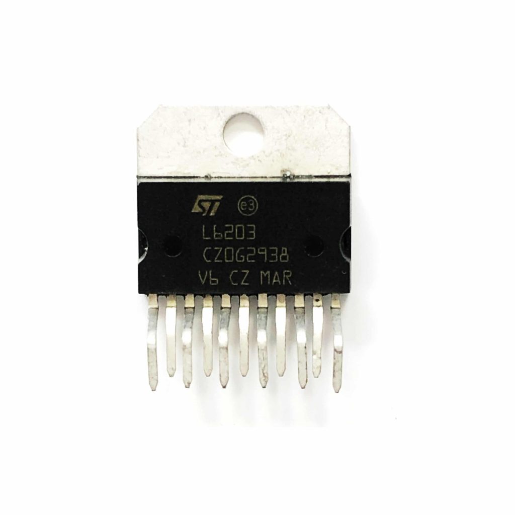 - L6203 یک آی سی درایور موتور های الکتریکی DC باولتاژ خروجی 48 ولت و جریان تا 4A می باشد.این آی سی با اعمال PWM قابلیت تغییر سرعت موتور را دارد.