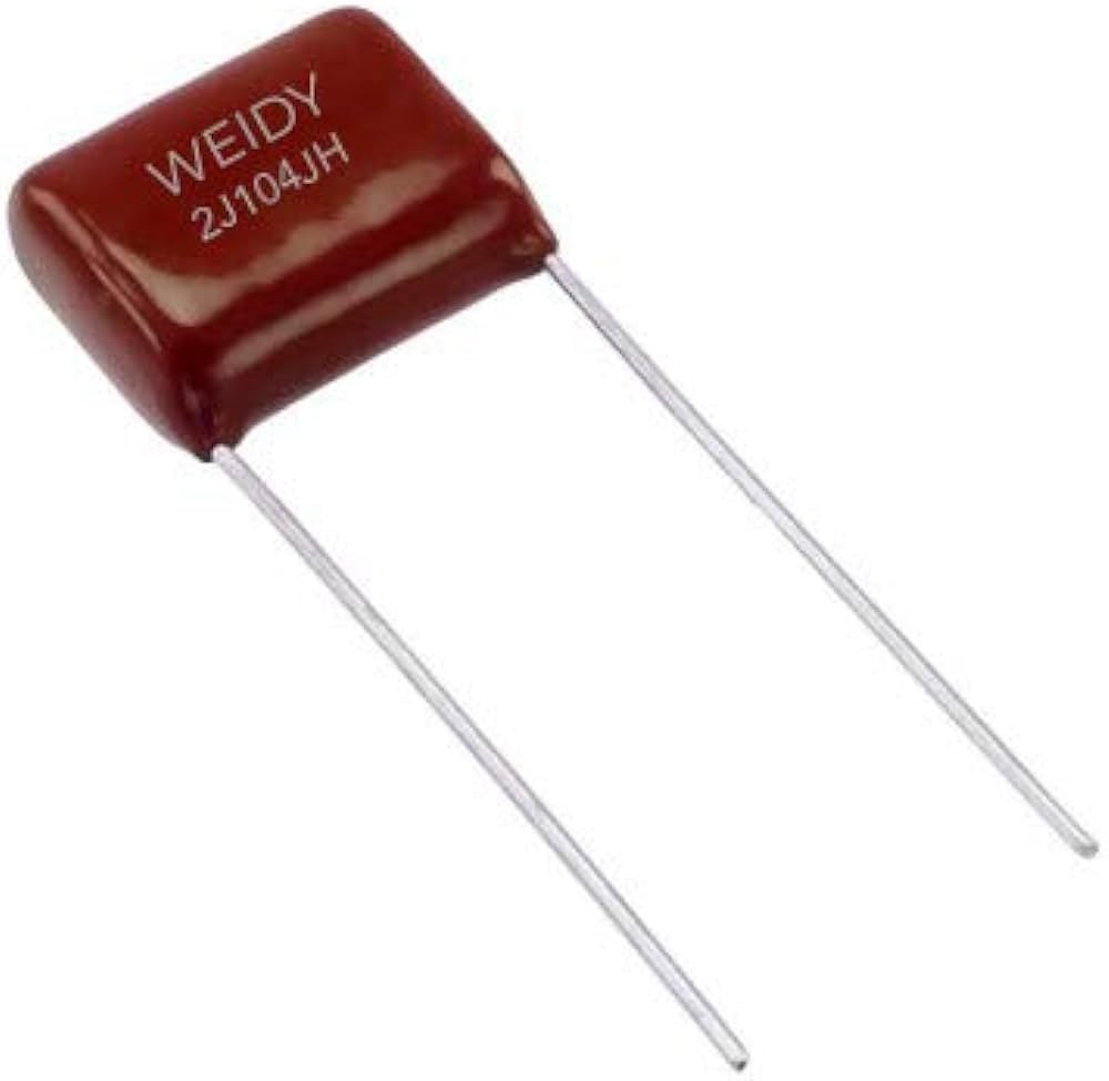 شناسه کالا: ۹۳۹۱خازن پلی استر 100 نانو فاراد 630 ولت فاصله پایه ها 15mm