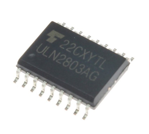 - آی سی ULN2803APG یک درایور دارلینگتون 8 کاناله با جریان خروجی 500mA می باشد.این آی سی برای راه اندازی رله ها ،لامپها و نمایشگرهای LED مناسب می باشد.